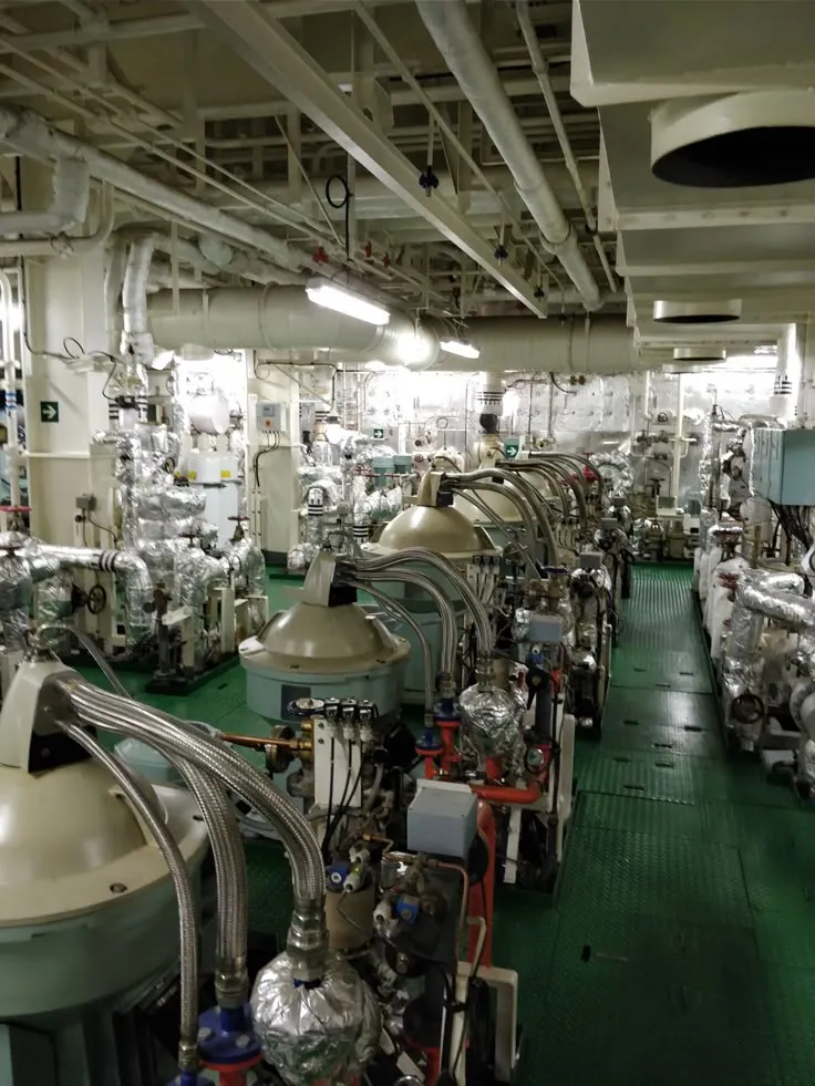 Ruang Mesin (Engine Room) merupakan area khusus di dalam kapal yang dirancang untuk penempatan berbagai mesin pendukung operasional kapal dan kargo, serta sistem penunjang kehidupan bagi kru dan penumpang kapal. Area ini mencakup pusat kendali mesin dan instalasi generator yang menyuplai kebutuhan listrik seluruh kapal.